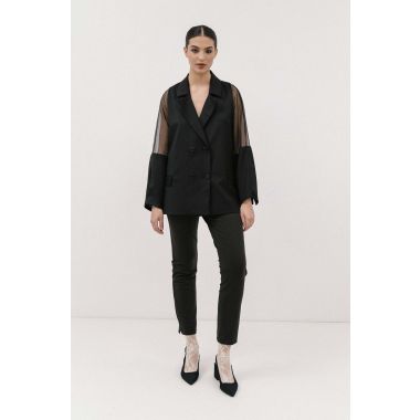 Ένα statement κομμάτι που συνδυάζει τη διαχρονική κομψότητα με μοντέρνα αισθητική. Το Pungent Blazer Black δίνει μια απρόσμενη, θηλυκή πινελιά στο κλασικό tailoring, προσφέροντας έναν elegant αλλά και fashion-forward χαρακτήρα. Η καθαρή, ίσια γραμμή του εξισορροπείται αρμονικά με τη διάφανη υφή στα μανίκια, δημιουργώντας ένα ιδιαίτερο παιχνίδι υλικών που αποπνέει σύγχρονη πολυτέλεια. Φοριέται εύκολα από το γραφείο έως το βραδινό ποτό, και συνδυάζεται ιδανικά με παντελόνια ή φορέματα.