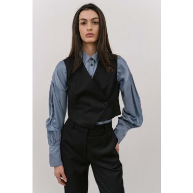 Το Armor Vest Black είναι σύμβολο μοναδικότητας, θηλυκότητας και φινέτσας. Ένα ιδιαίτερο γιλέκο που μπορεί να φορεθεί μόνο του, πάνω από πουκάμισο ή κάτω από σακάκι, προσδίδοντας διαφορετικό χαρακτήρα κάθε φορά.